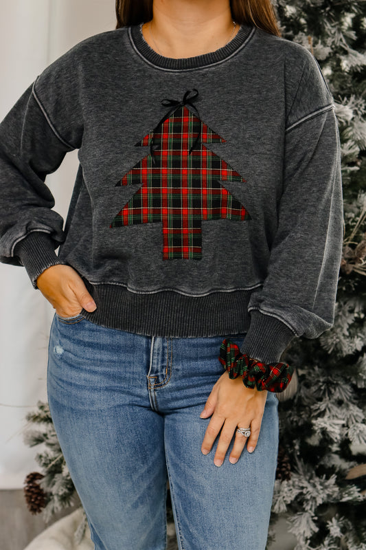Plaid Christmas Tree Pullover (heathered black)