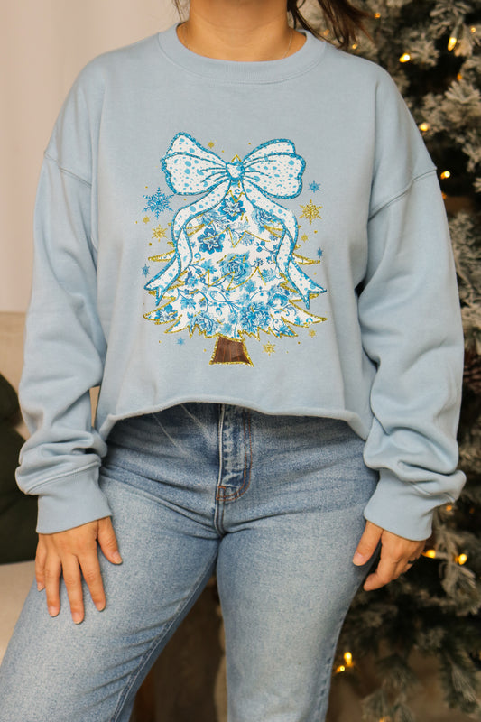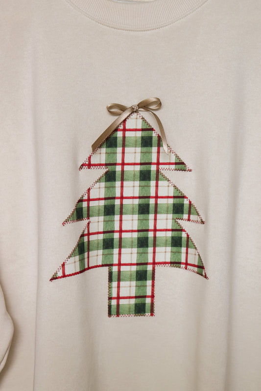 Vintage Plaid Stitched Christmas Tree Pullover (sand beige)