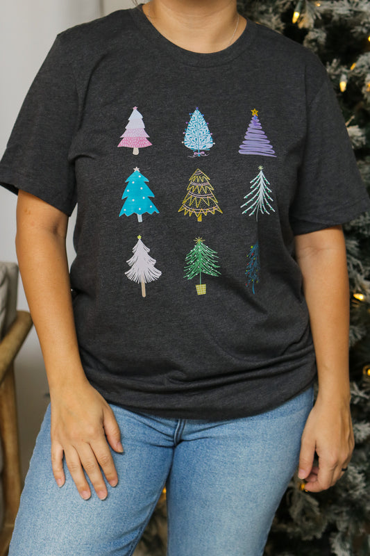 Vintage Plaid Stitched Christmas Tree Pullover (camel)